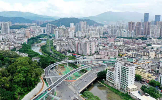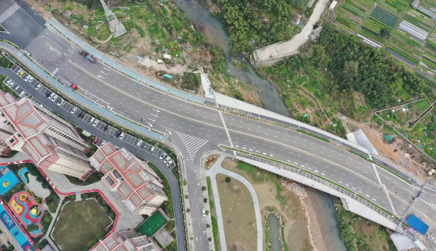 羅橋節(jié)點改造提升工程2019年11月開工建設(shè),2021年8月建成通車。該項目沿北環(huán)西路、龍興路設(shè)置南北分離式雙向四車道高架,南側(cè)接龍興路,北側(cè)接現(xiàn)狀北環(huán)西路,高架靠東側(cè)布置(緊貼烈士陵園),橋梁總長約1140米,凈寬約7.7米;在雙洋路、龍川北路、北環(huán)西路設(shè)置人行天橋,與山體步道銜接,以完善慢行系統(tǒng);在烈士陵園山體下采用明挖回填方式設(shè)置框涵,長度約225米,凈寬10.75米工程投資1.4億元。